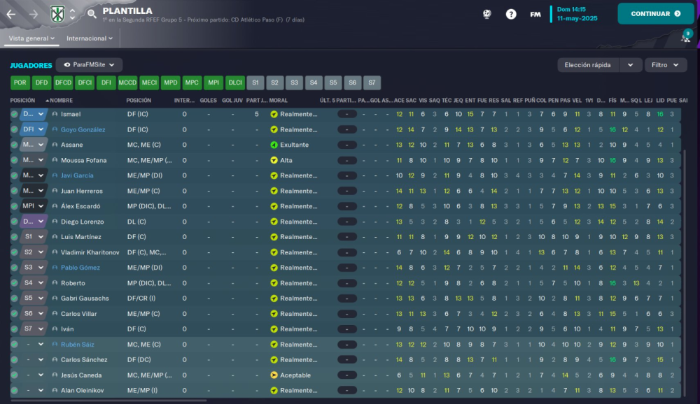 - Recuerda: Utiliza los filtros de tu Football Manager para visualizar también los jugadores de tus equipos B/C antes de exportar la plantilla.