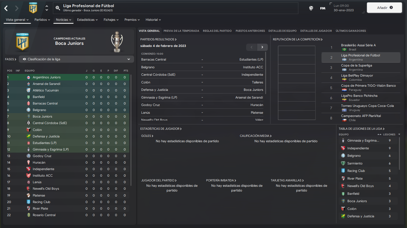 Tiene un error, cuando jugas la primera temporada, despues de eso la liga no se juega mas, queda eternamente solo la liga 2023 y comienza recien en 2025