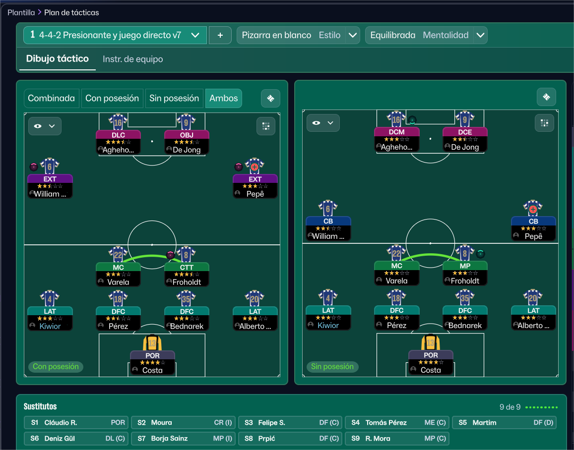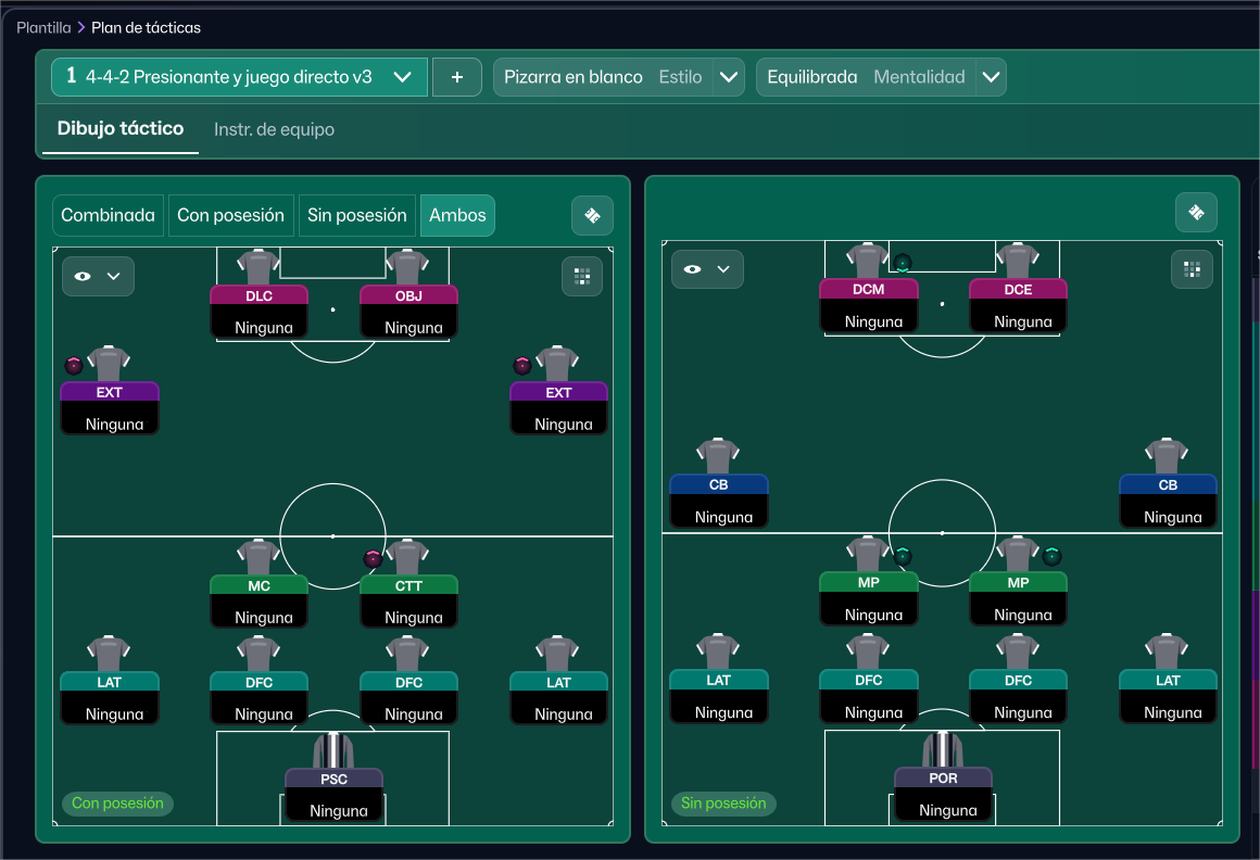 Hola, es la primera vez que subo algo aquí. Os dejo esta táctica que estoy usando en mi partida con el FC Cartagena que me sirvió para ganar los playoff de Primera RFEF y estoy aguantando en Segunda división con bastante tranquilidad.