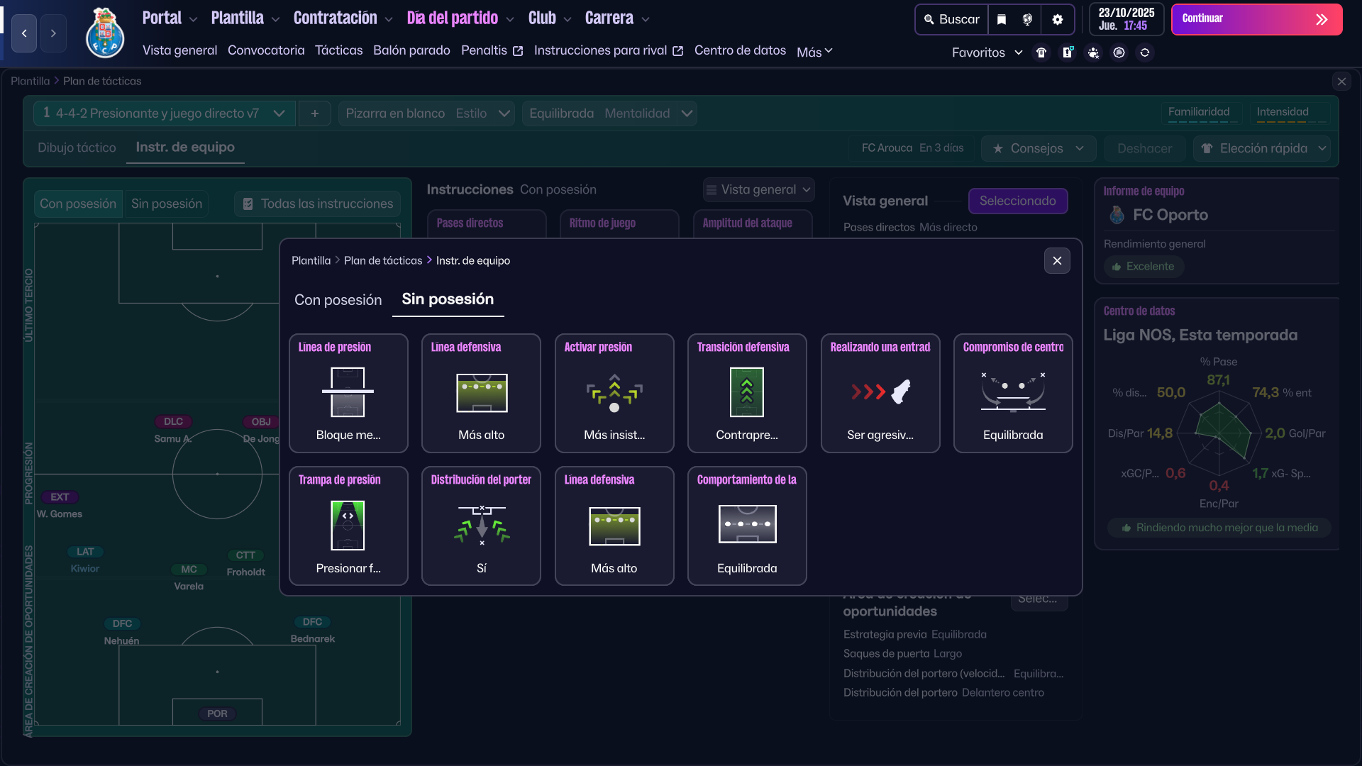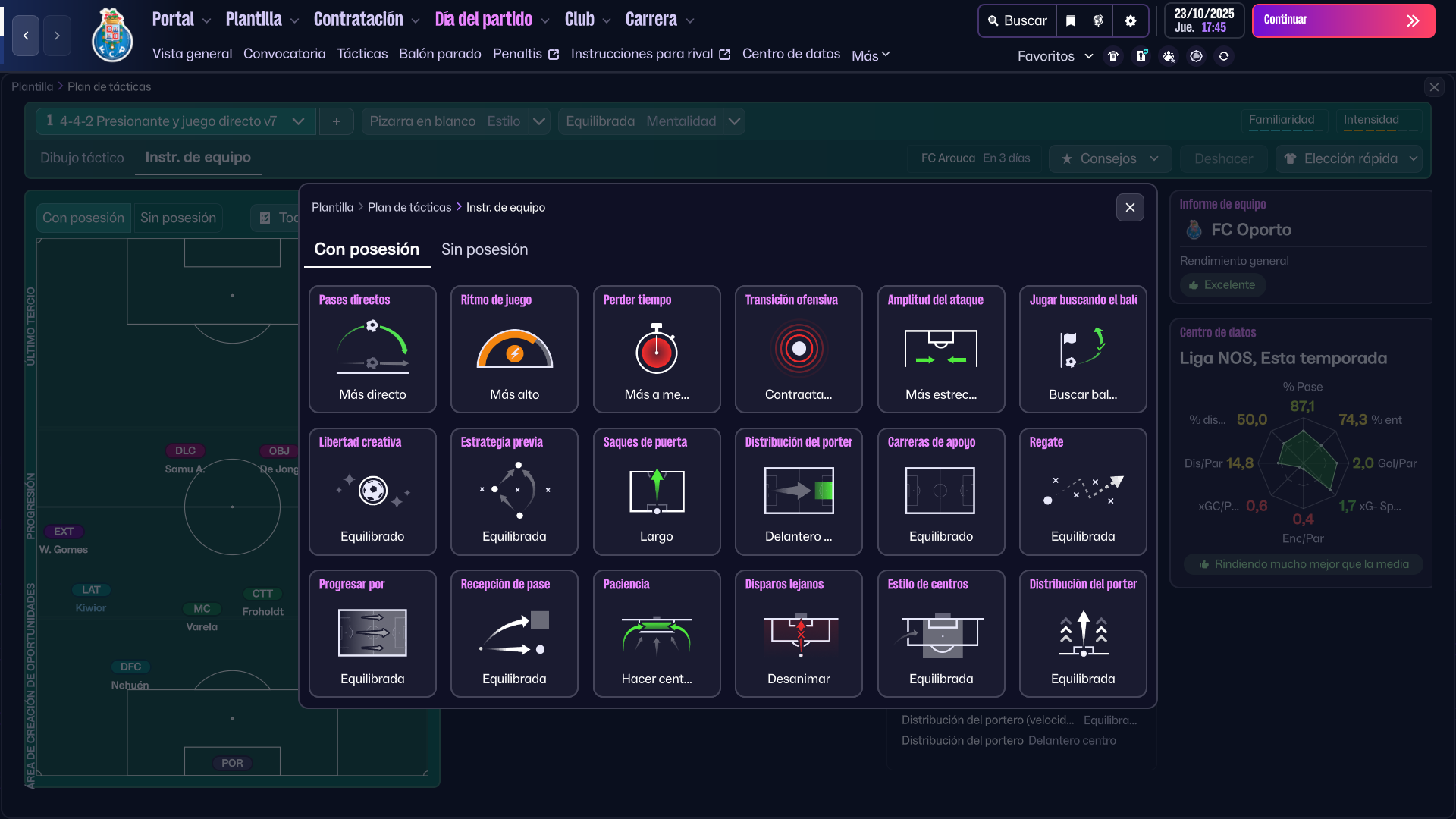 La táctica se basa en jugar con un bloque medio presionante y juego directo. Recomiendo que fichéis jugadores con buen físico.
