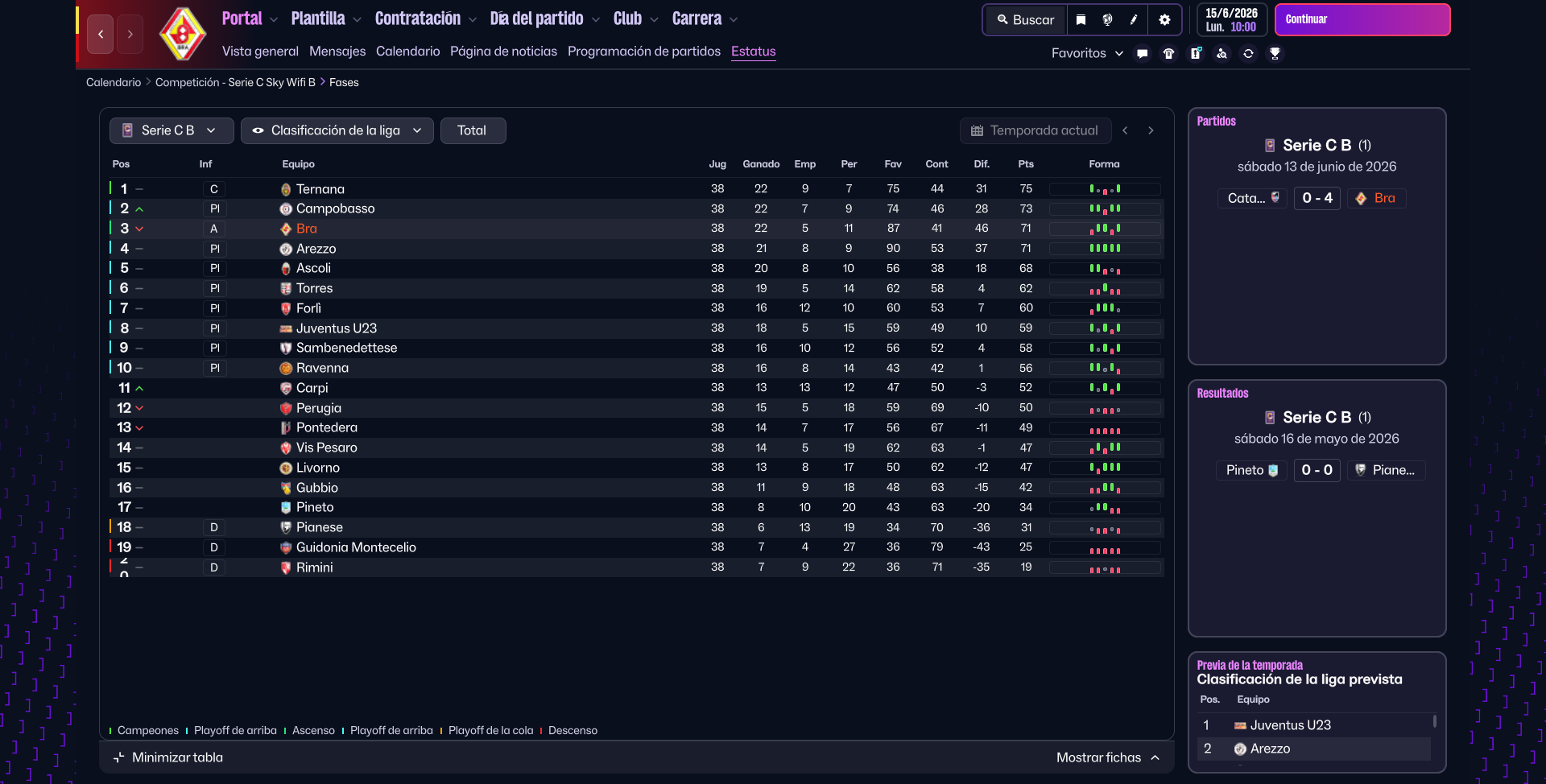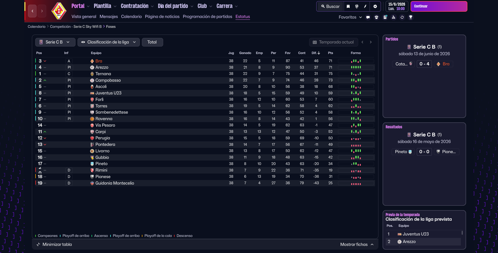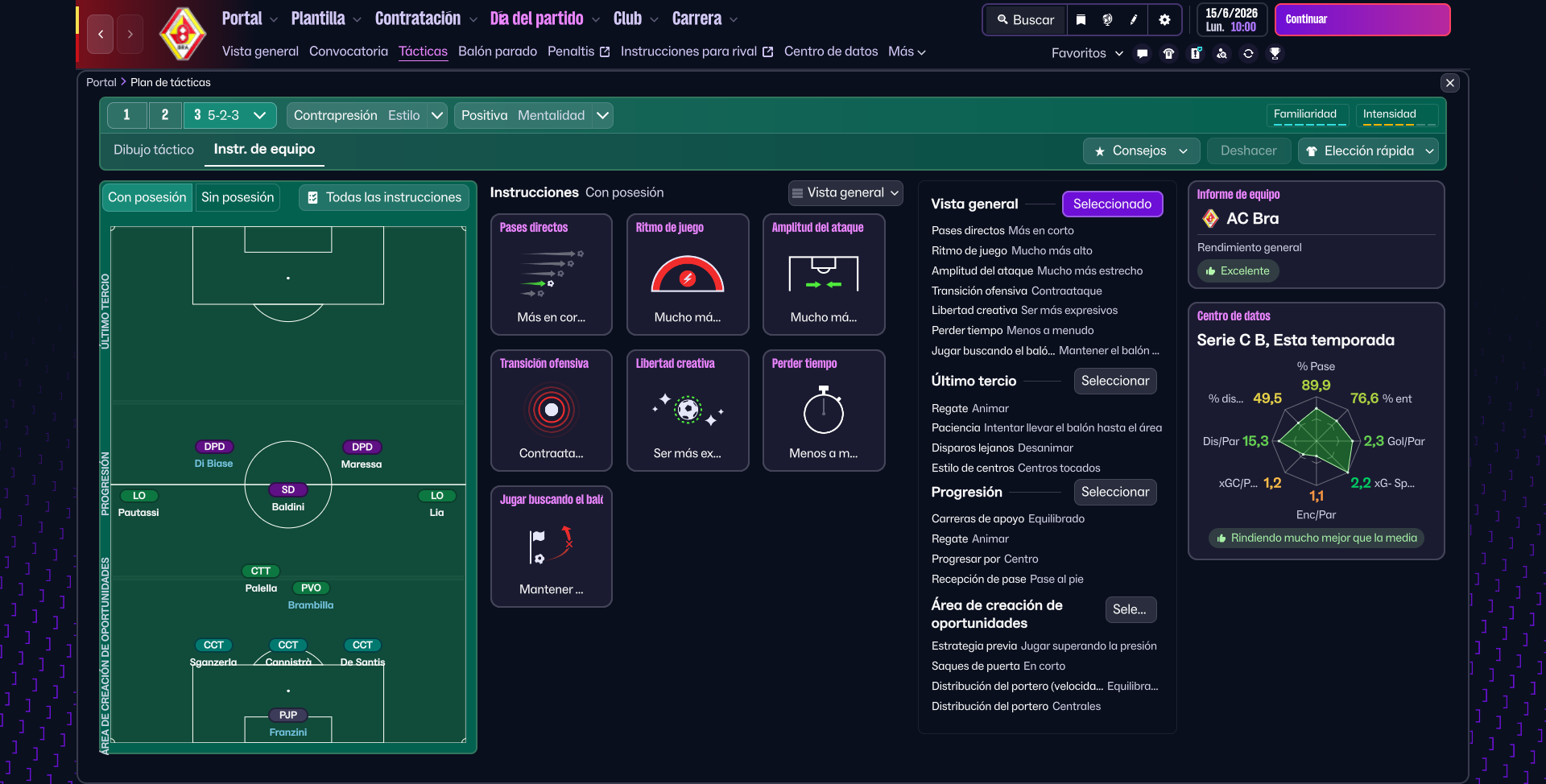 Como veis en las imágenes, esta es la táctica que utilicé con el Bra durante toda la temporada hasta conseguir finalmente el ascenso a Serie B por medio de los playoffs.