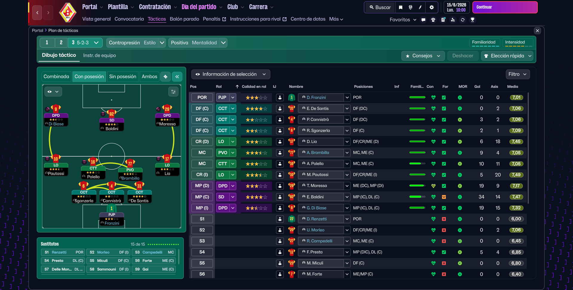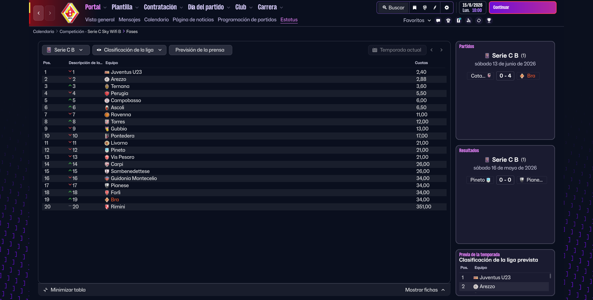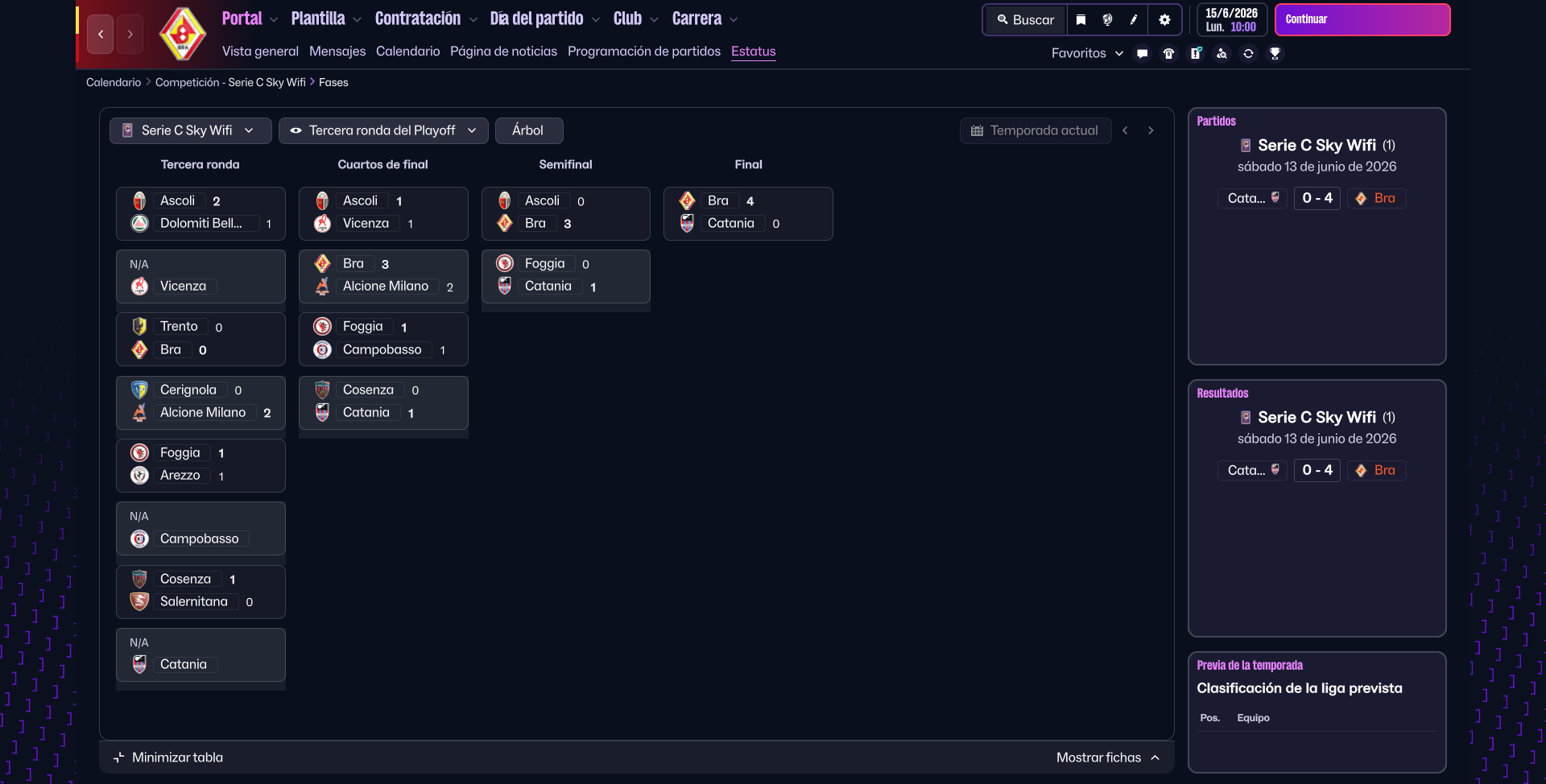 Como veis en las imágenes, esta es la táctica que utilicé con el Bra durante toda la temporada hasta conseguir finalmente el ascenso a Serie B por medio de los playoffs.
