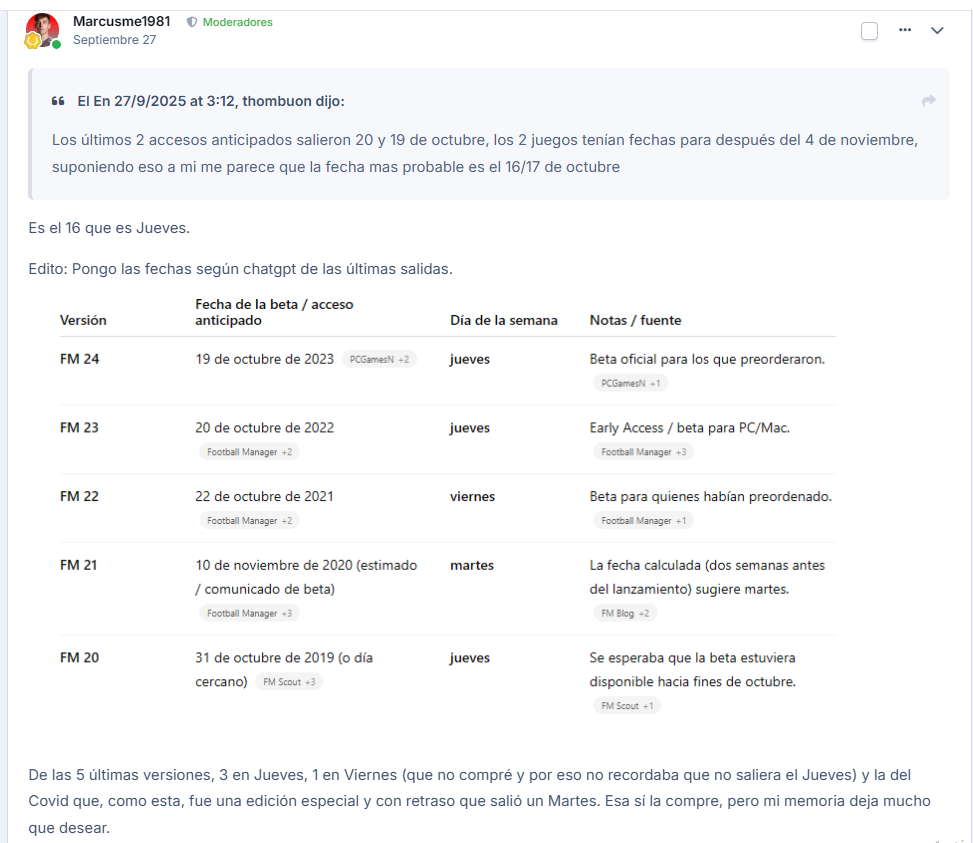 Entre que fechas saldrá la Beta del FM26? 74 votos
