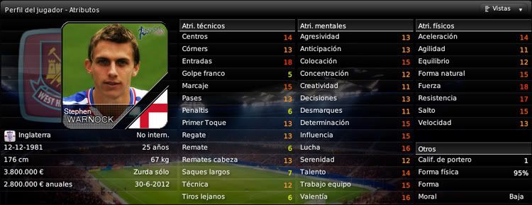 Warnock es bastante bueno, le tuve recientemente en el Wigan y fue clave para meter al equipo en Europa. Mis equipos dependen bastante de las bandas, y se agradece tener un lateral que sepa subir y centrar.