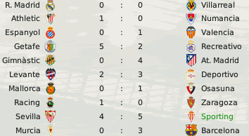 Sporting (4-3-3): Roberto © 7, Raúl Cámara 6 (45' Alcides 8), Michael Ball 6, Gerard 6 (60' Oded Gavish 5), Jorge García 6, Matabuena 7, Míchel 8, Kike Mateo 8, Diego Castro 8, Canella 9, Barral 6 (45' Salvatore Foti 8)