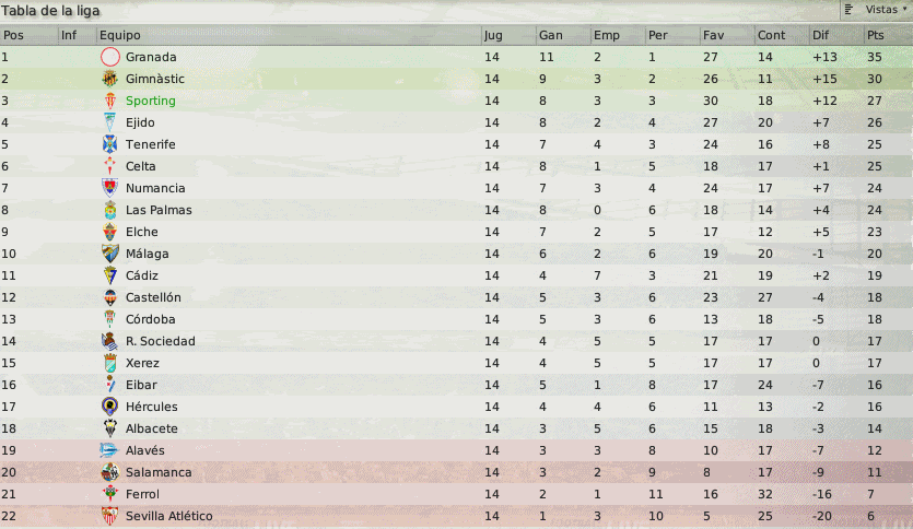 De todas formas el equipo anda muy bien, y como digo, ya está en puestos de ascenso asi que espero que te puedas mantener a pesar de que falte muchísimo para acabar la Liga.