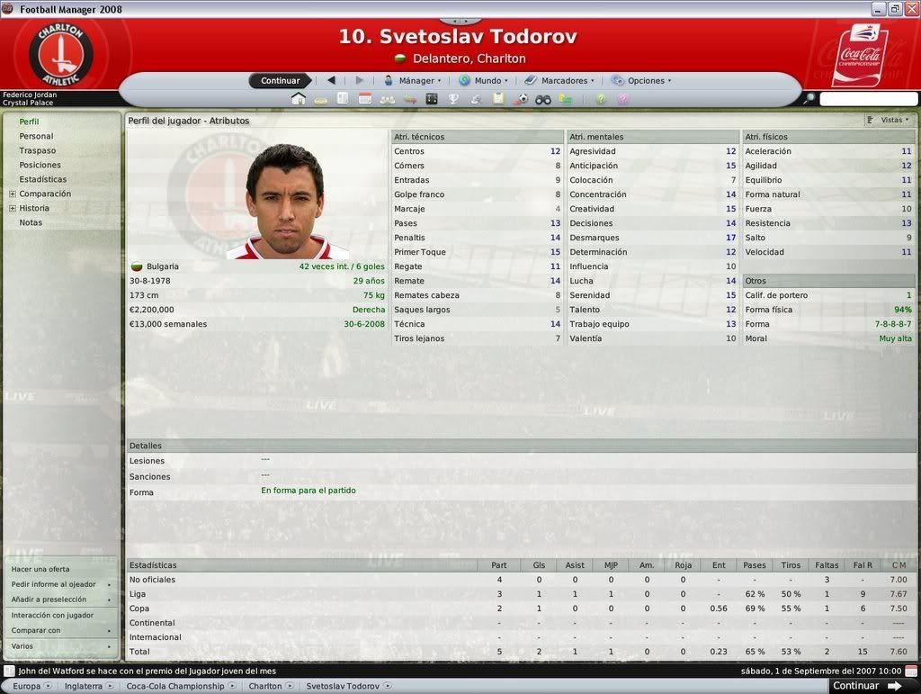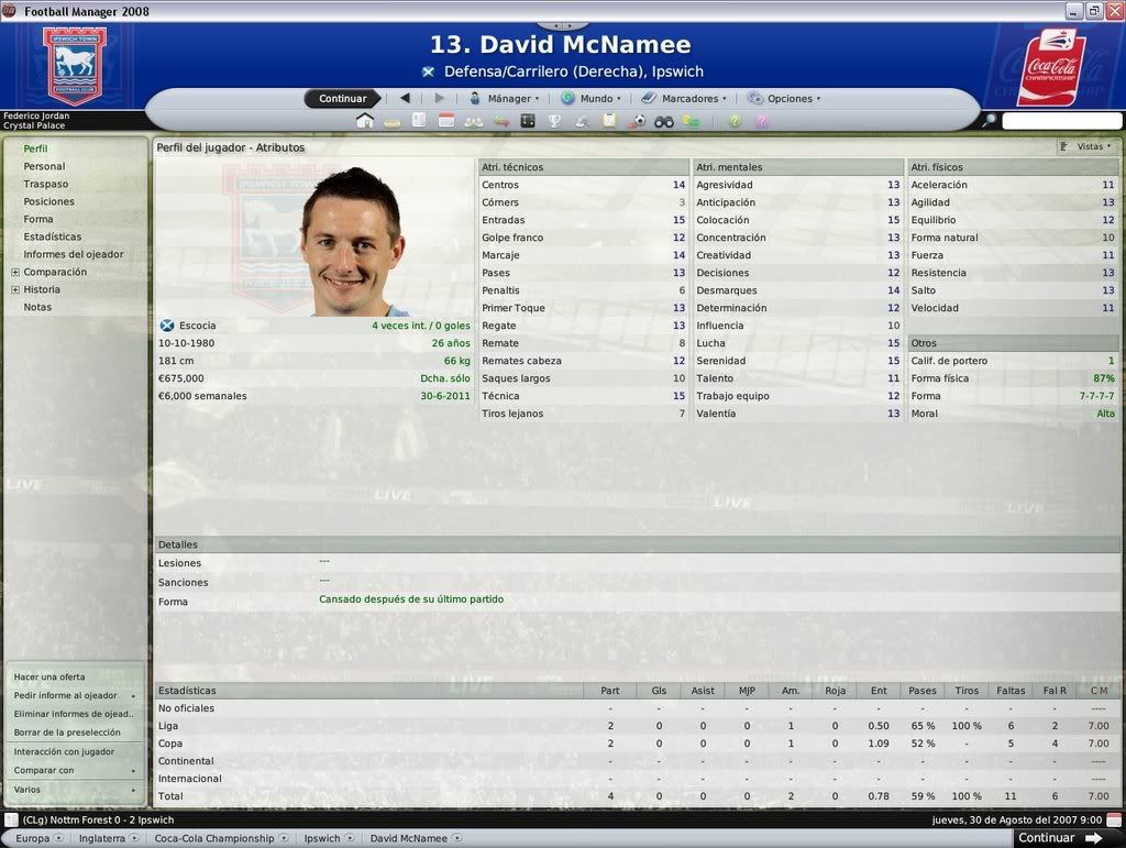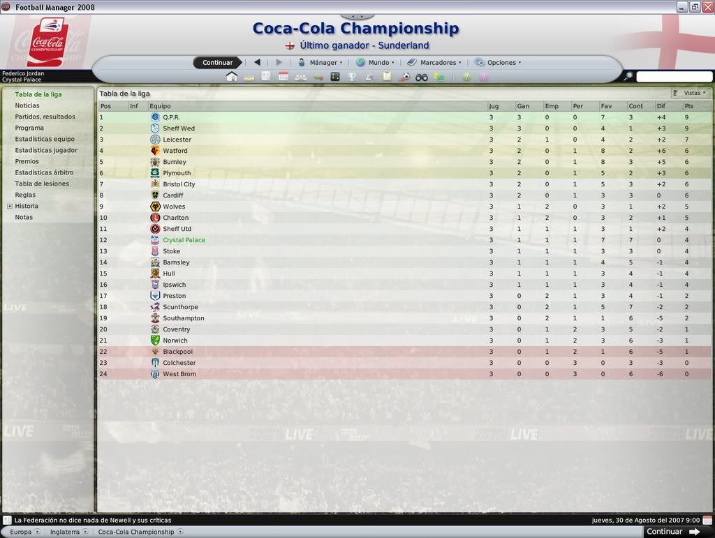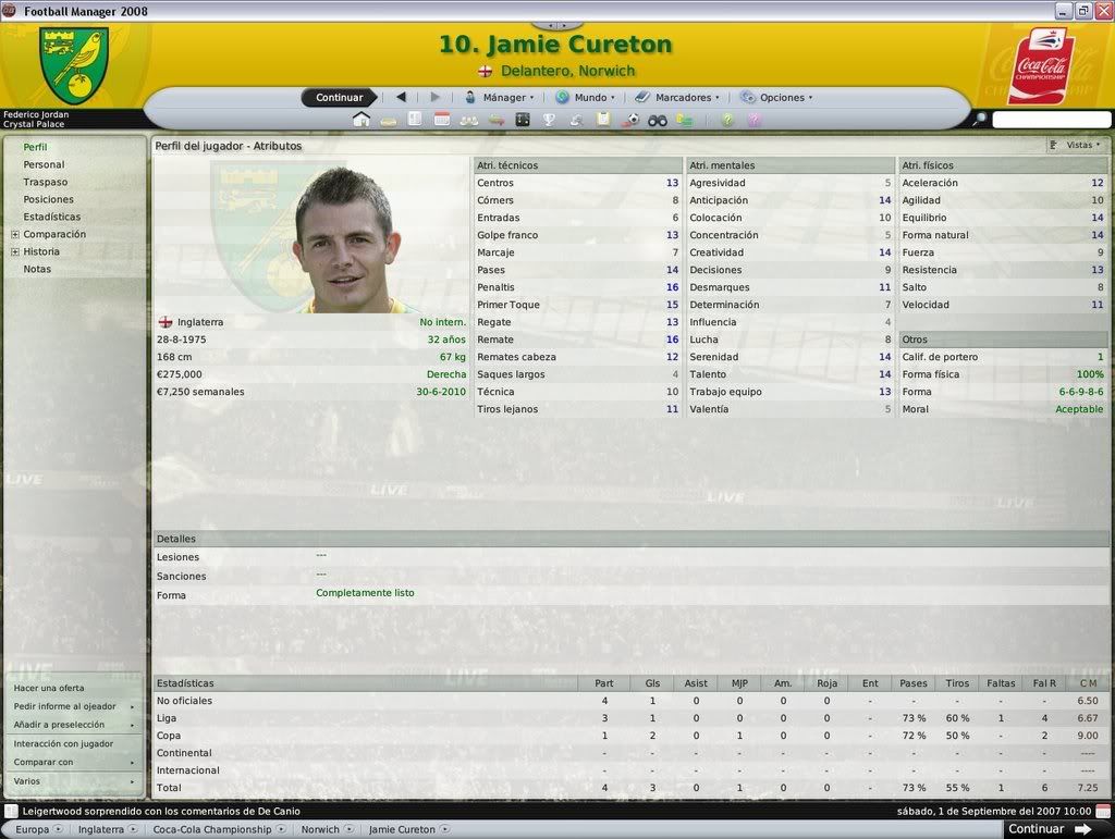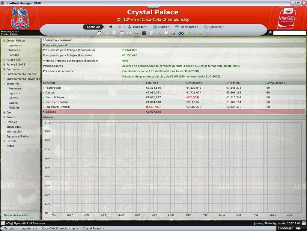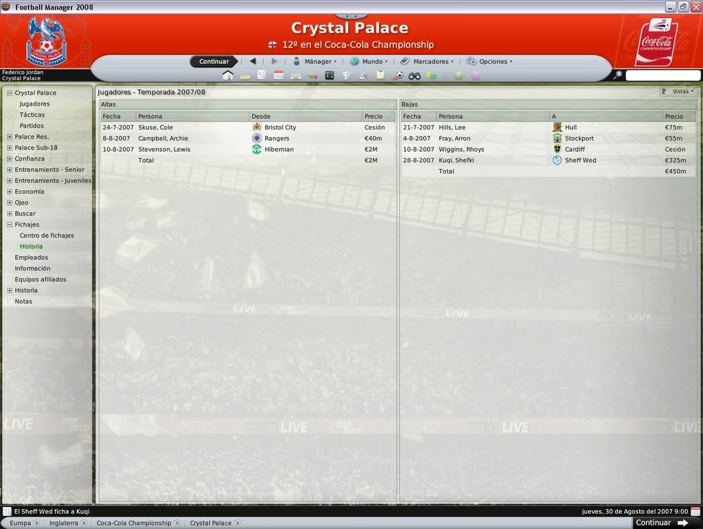 Primero que nada suerte con el Crystal Palace, veo que com dice Samura que fuiste de más a menos en la pretemporada, aunque creo que en siempre se es irregular más cuando uno esta buscando la táctica para encarar el campeonato. Sobre los refuerzos, creo que te seran muy utiles, sobre todo Lewis Stevenson que tiene un gran futuro. Bueno, pues que tengas suerte en el campeonato,