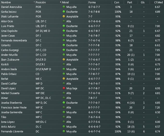 Situado en la mitad de la tabla nos recibe un Athletic que está jugando de manera muy irregular durante toda esta campaña y espero que la última derrota frente al Sevilla en Copa les pase más factura que a nosotros la del Madrid. Los jugadores que más en forma están esta temporada son Yeste y Gurpegi, que estan llevando el peso del equipo a sus espaldas. Precisamente Yeste es, junto a Llorente y Aduriz, uno de los jugadores que llevan el peso goleador del club vizcaíno.