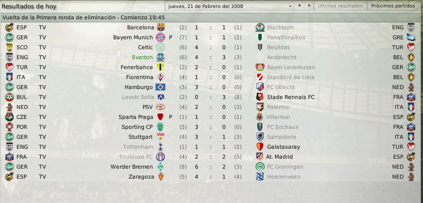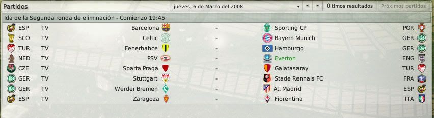 La FA cup por contra nos ha enfrentado al Arsenal, un rival complicado pero al que también podemos eliminar. Y en la uefa, dominada por los equipos alemanes pero con un nivelazo enorme de equipos, creo que para octavos el PSV no es un mal rival, mas teniendo en cuenta que el partido de vuelta será en Goodison Park.