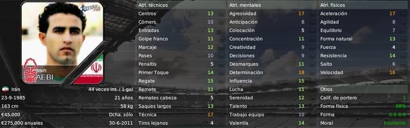 Uno de ellos se trata del iraní de veintiún años, Hosain Kaebi. Es uno de los mejores jugadores de Irán, jugando mas de cuarenta partidos como internacional con solo veintiún años. Puede ocupar cualquier posición de la banda derecha, con lo que puede encajar perfectamente en nuestro posible estilo de carrilero. Es un jugador muy prometedor y con mucha llegada al área. Cobrará 275.000€ en cada uno de los cuatro años por los que ha firmado. Será titular sin ninguna duda.