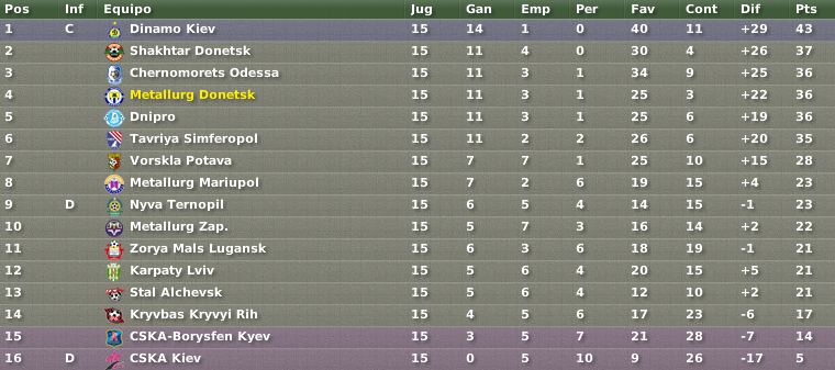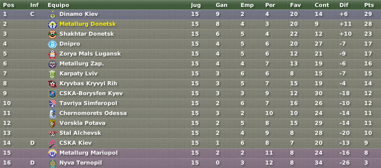 La liga se nos fue escapando poco a poco, y ya en el primer partido que se jugó de la segunda parte de la temporada se perdió., y despues poco más tarde en Dnpro nos dejó tocados. LA puntilla nos la dieron los 2 empates seguidos y la derrota ante el Kiev, pero vamos, no nos podemos quejar ni mucho menos.
