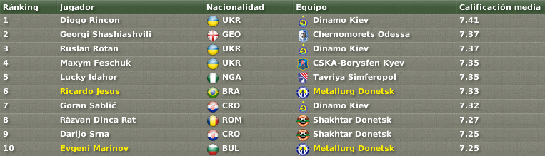 Pocos cambios con respecto al año pasado, vamos a tirar de la actual base de jugadores puesto que me han respondido y no tengo motivos para trastocarlo todo. Hemos añadido jugadores extra para dar más profundidad. Todos ellos superan los 25 años por lo que cuentan con experiencia, y además la mayoría son ucranianos que lo han venido haciendo bien con sus respectivos clubes. Ahora mismo en la plantilla los jugadores clave son los 3 brasileños, los 2 macedonios y el nuevo delantero ruso.