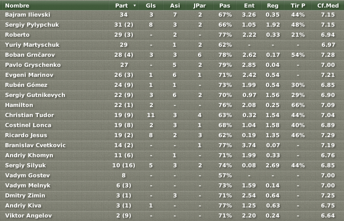 Supongo que el gran nivel defensivo no fue casualidad, habiendo perdido pegada el técnico optaría por reforzar el juego del equipo en esa parcela. Aunque el Metallurg no es que mejorara demasiado respecto a la 1ª vuelta en la que tampoco se encajaron muchos goles, sino que como djieste se perdió capacidad goleadora, más aún cuando el supuesto killer del equipo tuvo un decepcionante papel anotador durante la temporada. En cualquier caso acabamos 2º y el año que viene se jugará Champions que es lo importante, por no decir además que quedamos por encima del Shaktar lo que la afición seguro habrá tenido en cuenta.