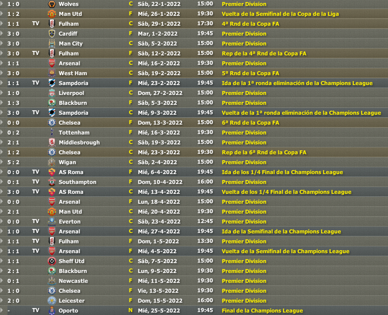 Vendetta, esa fue la palabra. En semifinales nos encontramos con el Arsenal, el mismo equipo que hace un año tuvimos enfrente en esta semifinal. En efecto, un año después ambos equipos volveríamos a coincidir en semifinales. Iba a ser una eliminatoria trascendental para ambos equipos. Por parte del Arsenal si cabe todavía más, ya que en Premiership como era conocido estaban completando una actuación decepcionante así que su forma de salvar la temporada era meterse en la final de la Champions, competición por cierto de la que los gunners son los actuales campeones. Por nuestra parte, también era vital esta eliminatoria ya que veíamos como el Chelsea estaba intratable en liga, y al no haber podido ganar ni la Carling ni la FA Cup únicamente nos quedaba la Champions como sueño de poder pescar un título, aunque fuera en el menos posibilidades tendríamos.