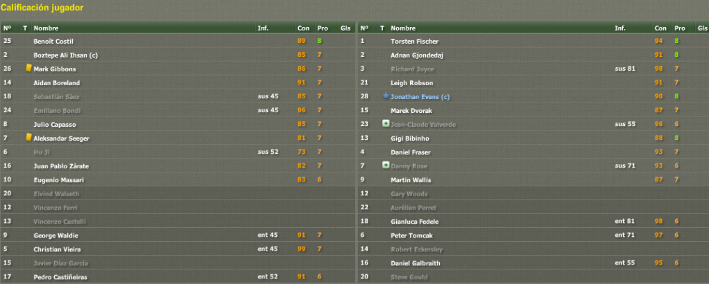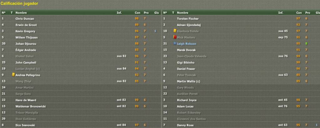 indicador.gif La buena suerte que veníamos teniendo en la primera vuelta en materia de lesiones se ha acabado. Perdemos por lesión para toda la temporada a Ricky Grant, no venía jugando demasiado pero era un tipo aprovechable para la rotación y nos veremos obligados a cubrir su ausencia. Además, el extremo Taylor también se ha lesionado para 3 o 4 meses con lo que prácticamente no va a poder vestirse de corto hasta los últimos partidos de liga. Son dos bajas inesperadas y como no queremos que el equipo pierda fuerza viendo que estamos vivos todavía en todas las competiciones, decidimos incorporar a dos futbolistas en el mercado de invierno.