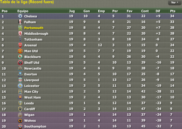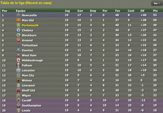Pues sí, esta temporada tiene toda la pinta de ser un mano a mano entre Chelsea y Portsmouth. Lo cual es una sorpresa, porque ambos equipos a pesar de ser buenos no éramos claros candidatos al título. Los 3 equipos más fuertes del país han estado flojos (Blackburn, Arsenal y United) y ambos hemos aprovechado esta ventana de la oportunidad. Aunque bien es cierto que el Chelsea se ha pulido más de 100 kilos este verano... algún añito les tocaba luchar por la liga, porque vaya tela.