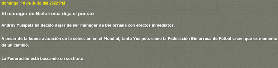 bielorruso. Me dolió decir que no a mi país, pero objetivamente en ese momento había varios managers que habían hecho más méritos para aspirar al cargo. Ahora,