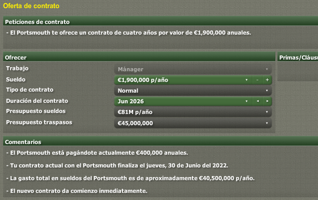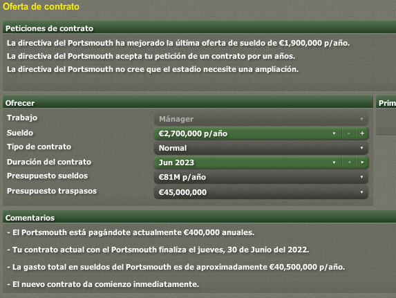 . No es para menos. Para colmo, soy uno de los managers peor pagados de la Premiership. En Rusia, dado mi palmarés y prestigio cobraba uno de los sueldos más altos de toda la Europa del este. Pero en el fútbol occidental todavía tenía que labrarme un nombre, por lo que la oferta del Portsmouth a nivel económico fue de las más modestas. Estaba por ver si era capaz de sacarlos del descenso y establecer un proyecto fiable. Aún así, no perdí dinero ya que su oferta era ligeramente superior a lo que percibía en mi antiguo trabajo. Pero, a día de hoy, los cerca de