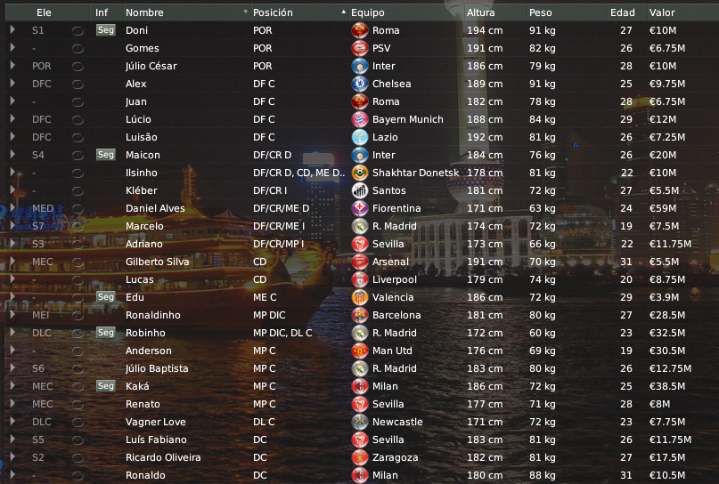 Defendiendo el arco brasilero estará Júlio César. Un tremendo arquerazo con atributos importantes como Agarre de balón (18), Anticipación (16), Reflejos (18), Agilidad (17), Colocación (19), etc, etc, etc. Además, es el arquero titular del Inter de Milán, de Italia. Esperando su oportunidad (y sinceramente no creo que les llegue) estarán Doni (de la Roma italiana), y Gomes del PSV holandés. También son buenos arqueros, pero mejor es Julio César que, seguramente, partirá como titular.