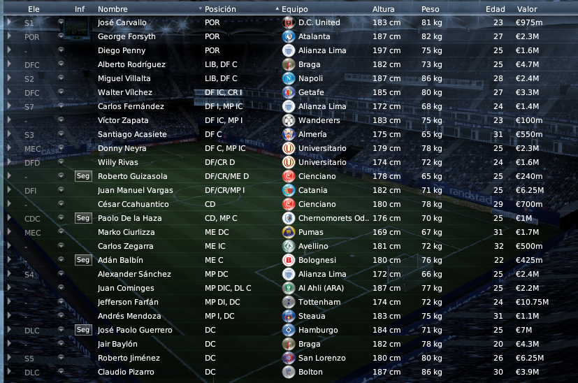 -Arqueros: No hay cambios con respecto a la anterior Convocatoria (la de la Primera Vuelta) y el Chemo del Solar mantiene a José Carvallo, Diego Penny y George Forsyth como sus tres arqueros.