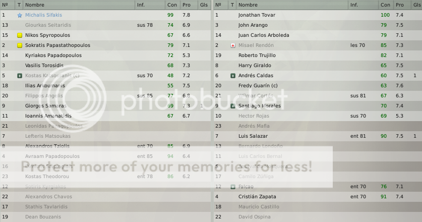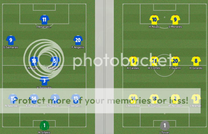 A los cafeteros no les salía el gol del empate y Grecia se prestaba muy atento para las contras que podían generar, pero Eduardo Lara mandó a la cancha a Falcao, Cristian Zapata y Luis Salazar, en ellos encontró lo que buscaba (seguridad defensiva con Zapata, y con Falcao y Salazar el volumen ofensivo), justamente coincidió con la subida de rendimiento del equipo colombiano. A los 86 minutos un desborde perfecto de John Arango que es conectado de manera perfecta por el recien ingresado Salazar (5 minutos en cancha).