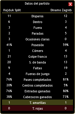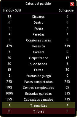 A partir de este momento nos empazamos a gustar y nuestro dominio fue total. llegando a puerta cada vez que lo intentábamos y marcando dos goles más, el primero de Busic que aguantó la entrada de Vrdoljak, tras un gran pase de Linic, para luego resolver por bajo, y el segundo fue obra de Løvenkrands, con un cabezazo picado desde el punto de penalti tras un centro de Jertec.