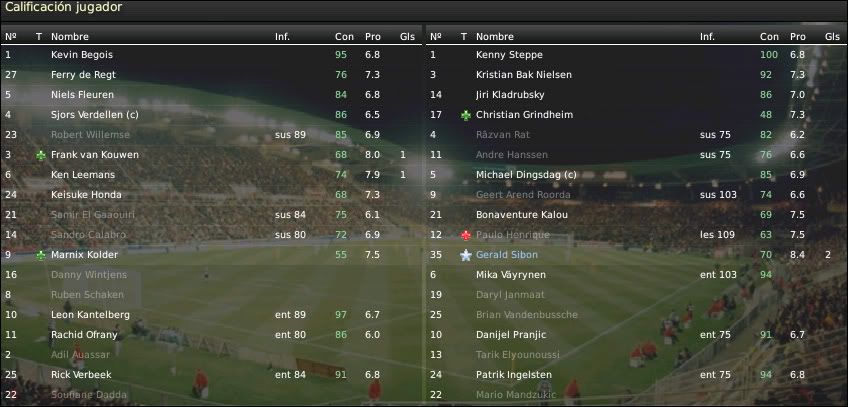 En fin, se veía venir tras el milagro del otro día que alguna nos íbamos a llevar en los próximos partidos, aunque no me esperaba que fuse algo así. El VVV se debió de quedar a gustísimo, casi tanto como Steppe, que la cagó en los dos goles, y que se lleva mi primer punto negativo de la temporada para un portero (vamos, que va a chupar banquillo un tiempecillo...). Por contra, Sibon aprendió de la bronca que le eché el otro día e hizo una magnífica actuación, aunque al final no sirviese de nada.