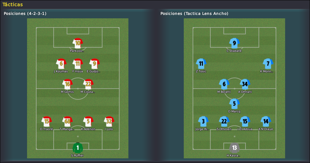 • cabrere: La verdad es que se está convirtiendo en un rival bastante puñetero, espero que en la segunda vuelta les humillemos en su propia casa. En cuanot a nuestra trayectoria, una cosa es segura: los aficionados del Lens no estarán aburriendo. Derrotas, remontadas, victorias aplastantes... Aquí hay de todo, sí señor xD. Un saludo, y gracias por seguir la historia xD.