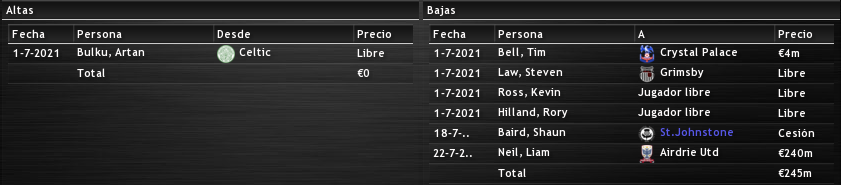 Esta segunda línea como bien has comentado que hay en Escocia, formada principalmente por Hibernian y Aberdeen principalmente, donde tienen la misión de intentar competir contra el Celtic y el Rangers, dos clubes que no dejan soñar a los otros integrantes de la competición. Nosotros tendremos esa dura tarea. No será nada fácil, pero como siempre digo, con trabajo e ilusión, ¿Por qué no?.