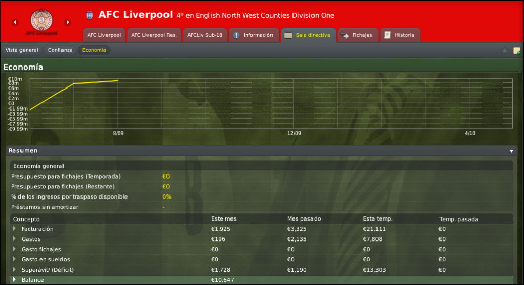 El AFC Liverpool suele llevar bastante gente para lo que es el nivel en el que juega, tanto de local como de visita, tanto que el record negativo de asistencia en la vida real en sus 18 meses de vida es de 115 espetadores y en archivo de Super Bladesman's esto esta bastante cercano a la realidad. Seguramente si los resultados acompañan podremos tener buenas recaudaciones, que siendo amateurs es una gran fuente de ingresos.