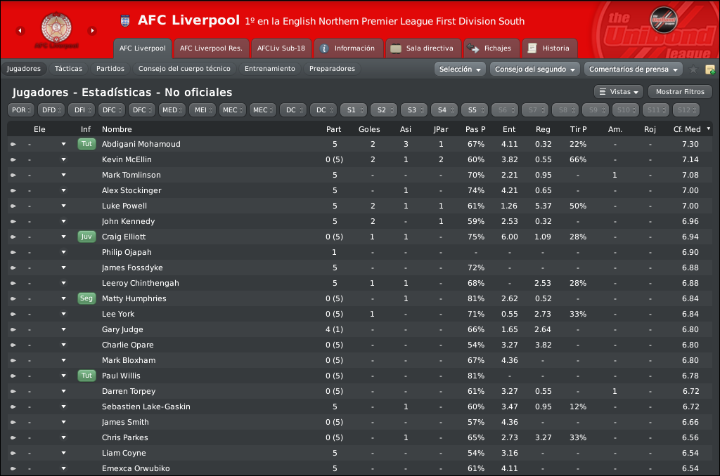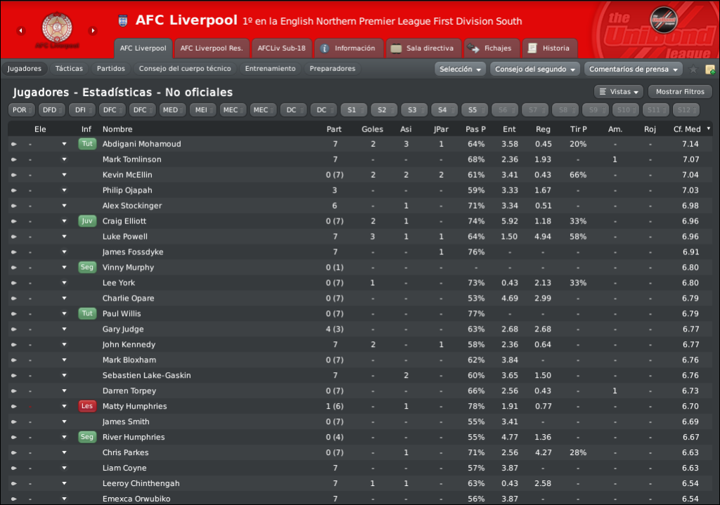 buena pretemporada donde se ha mostrado un buen rendimiento y se ha comprobado que este equipo tiene nivel para consolidarse en la zona media, media/alta de la tabla donde todos le colocan, esperemos que no se acuse el cambio de categoría en los primeros encuentros que serán muy importantes y que los jugadores sepan ofrecer lo mejor de ellos mismos para que la temporada sea cuanto menos tranquila... veremos como marcha la UniBond South.. en cuanto a los primeros enfrentamientos coperos el Skelmersdale es un equipo que no se le ha dado muy bien al AFC Liverpool pero esta temporada hay un nivel mas elevado por nuestra parte y sin duda hay que ganar porque si no se fastidia la primera de las copas a las que aspiramos jejej en cuanto a la FA Cup creo que sera un partido mas igualado pero esperemos pasar tambien, no digo yo meternos en la rondas oficiales pero si dar guerra en las clasificatorias de la FA Cup xD