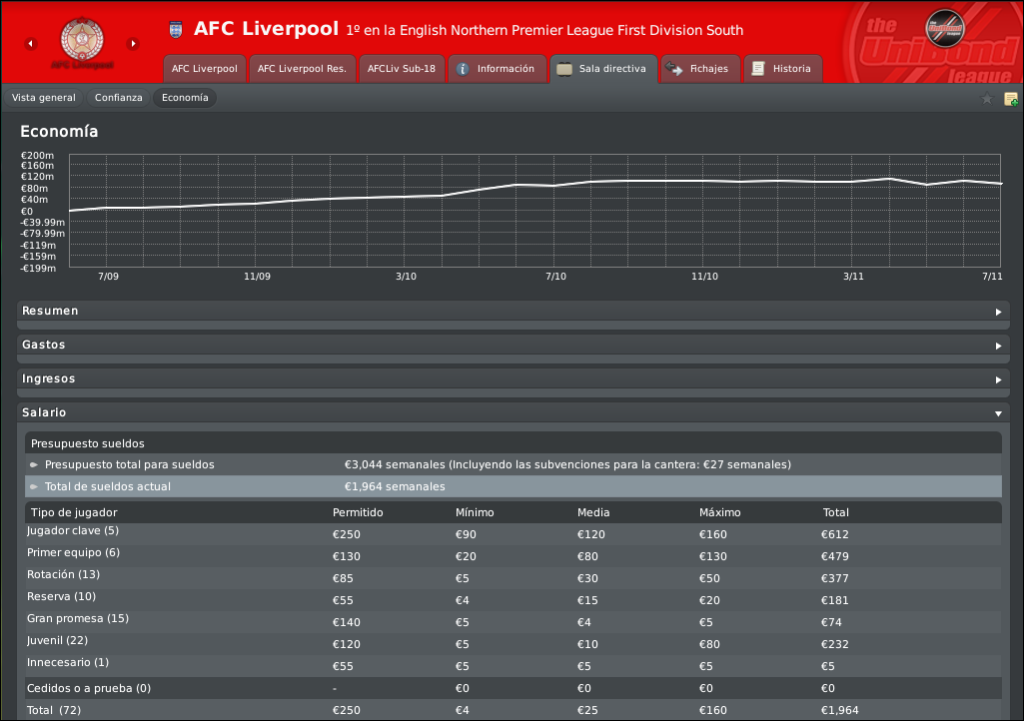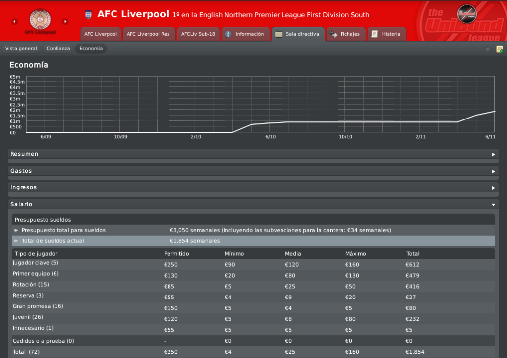 En cuanto al ajuste que has hecho en los salarios la verdad es que yo no lo haria pero admiro que tomes esa actitud , creo que le da mucho realismo por que seguramente los jugadores despues de dos ascensos necesitan un reconomiento , tambien creo que es una manera de agregarle dificultad a una economia que viene muy bien y tambien me parece acorde a la politica que vienes teniendo en tu historia. Pero como te dije por mi no lo hubiera hecho xD