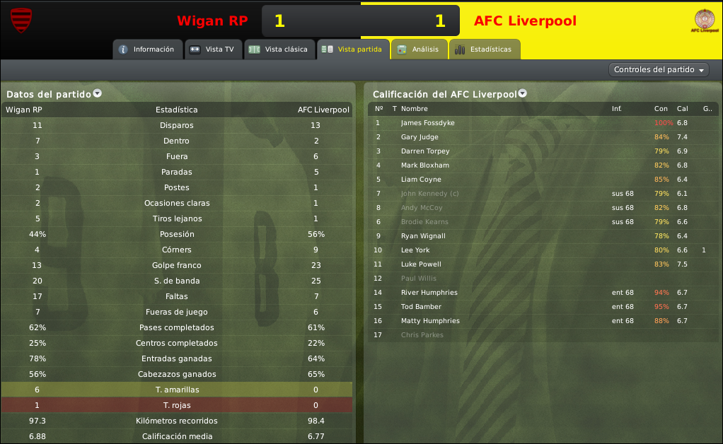 Judge y Wignall volvian por Mullin y Matty Humphries, el AFC Liverpool llegaba al Robin Park Arena entonado por las dos grandes victorias en el FA Vase para visitar al Wigan RP, un equipo que lucha de mitad de tabla hacia arriba buscando la primera victoria de visitante en la liga esta temporada.