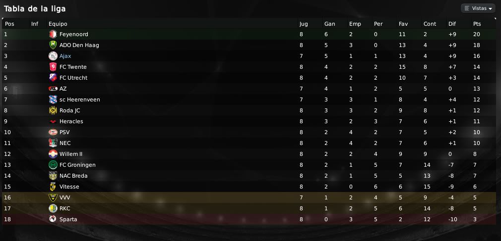 Mayo 30, 201015 años Autor AFC Ajax - Frank, You'll never smoke alone. Post nº 34 EREDIVISIE. JORNADA 7: EL AJAX NO PASE DEL EMPATE. Amsterdam Arena - 49472 Espectadores. Ajax 1-1 ADO den Haag 27 de Septiembre de 2009 Bogdan Milic: "Sabíamos que si lo hacíamos como hasta ahora era factible sacar algo de aquí. Al final, con algo de suerte, lo hemos conseguido." Rijkaard: "Teníamos mucha ilusión en este partido porque podíamos habernos colocado más arriba pero bueno, no ha podido ser. Tampoco hay demasiado que reprochar, puesto que no es normal tirar 4 veces al palo en un mismo partido."1-0 Mathias Jorgensen (28'), tras fusilar dentro del área pequeña después de una buena asistencia de Luis Suárez 1-1 Bogdan MIlic (37'), elevándose por encima de Alderweireld y rematando un centro desde la izquierda. - Los palos se alían con el Ado den Haag hasta en cuatro ocasiones. Definitivamente, la suerte no está del lado del Ajax en los últimos encuentros. Si en la Europa League contra el Fenerbahçe el héroe fue el portero Volkan Demirel, en esta ocasión y en la Eredivisie contra el ADO den Haag, han sido los palos los que han privado al conjunto de Amsterdam de hacerse con la victoria. Y no en una ocasión ni en dos, sino en cuatro. La más clamorosa de ellas, un remate de Luis Suárez a puerta vacía en el minuto 92. Dejando esto aparte, se ha visto un partido perfectamente controlado por el Ajax, teniendo la posesión y generando ocasiones con relativa frecuencia. En el apartado táctico, el ADO den Haag sorprendió plantando en el césped del Amsterdam Arena un 3-5-2, con 3 mediocentros puros que tenían como principal objetivo destruir el fútbol creado por Lodeiro y Skjelbred, y dos interiores pegados a banda que en defensa se convertían prácticamente en laterales, tapando así las internadas de Emanuelson, Suárez y Barazite. En ataque, siempre quedaban atrás los 3 centrales, mientras que la mayoría de los centrocampistas, por no decir todos, trataban de llegar al área de Maarten Stekelenburg. Arriba, aun sabiendo del peligro y de la importancia del montenegrino Milic, no se pudo hacer nada frente a esto y el gol acabó llegando precisamente de la manera que todo el mundo se temía: Centro y remate de cabeza del gigantón. Como ya se advirtió también, el ADO den Haag, a pesar de la variante que supuso ese 3-5-2, siguió basando su fútbol en una férrea defensa y en juego directo a los dos de arriba. Sin embargo el Ajax, gracias al buen partido tanto de Suárez como de Emanuelson, consiguió generar peligro en diversas ocasiones y fue total merecedor de haber conseguido algo más en el partido. Lodeiro cumplió, aunque quizá se esperaba algo más tanto de él como de Skjelbred, que tampoco jugó su mejor partido y al final ambos acabaron siendo sustituidos. No obstante, De Jong y Morales, sus sustitutos, tampoco revolucionaron el partido ni mucho menos y siempre se vieron agobiados por la gran acumulación de hombres que desempeñó el conjunto visitante. También hay que señalar la lesión de Sulejmani. El serbio se había consagrado como delantero titular del equipo pero no tuvo tiempo de mostrar nada ya que en el minuto 6 tuvo que ser sustitudo. Este contratiempo provocó la entrada de Barazite, que no estuvo muy afortunado. Lógicamente, fue Suárez el que se situó como delantero del equipo, dejando el flanco derecho del ataque al ex jugador del Arsenal. En cuanto a los jugadores de la parecela defensiva, la verdad es que Alderweireld no tuvo su mejor día y no aprovechó la ocasión que le daba Rijkaard para dar descanso a Verthongen. El joven belga se vio superado en casi todas las ocasiones por Milic y en el gol tuvo una participación directa y desafortunada. No obstante, el jugador es joven y hace gala de un gran potencial, y seguirá contando con minutos sin lugar a dudas. Así pues, partido correcto de un Ajax que en condiciones normales se habría llevado el gato al agua. Los palos lo impidieron. Milic pudo con el Ajax. - Más información: Datos del Partido / Calificaciones / Clasificación Eredivisie - Próximo partido: EUROPA LEAGUE - Hertha Berlin Vs Ajax Bogdan Milic (7'9)