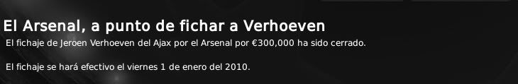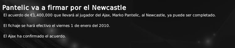 Mayo 28, 201015 años Autor AFC Ajax - Frank, You'll never smoke alone. Post nº 31 VENTAS AJACCIED: RUMBO A INGLATERRA Confirmadas dos salidas del Ajax. Verhoeven al Arsenal, Pantelic al Newcastle. 19 de Septiembre de 2009 Marko Pantelic: "En el Newcastle me garantizan la importancia y la participación que aquí no he llegado a tener." Verhoeven: "Era mi última oportunidad para poder pertenecer a uno de los grandes de Europa." - Se confirman dos bajas para Diciembre en el Ajax. Si bien ya se adelantaba la más que presumible salida de Pantelic, junto a la del serbio, también se ha oficializado la del portero holandés Verhoeven, que se encontraba cedido en el Arsenal de Londres. Tras finalizar la cesión, que se prolongaba durante unos meses, el equipo gunner ha comunicado que hace efectiva la opción a compra, cifrada en 300 m€ . Por otra parte, con la venta de Pantelic, el Ajax ha ingresado 1'4 M€ además de que se ahorra la ficha del delantero serbio, que ascendía a 725.000 Euros anuales. Así pues, dos buenas ventas para el Ajax que se libra de dos futbolistas veteranos que no contaban para Rijkaard y que además van a dejar algo de dinero en las arcas del club. Verhoeven no será reemplazado por nadie pues, en caso de necesidad, se cuentan con porteros en la cantera lo suficientemente preparados como para dar el salto al primer equipo. En la posición de delantero centro se trabajará por la incorporación de Kanu pero, si finalmente el delantero nigeriano no viene, tampoco se realizará ninguna incorporación ya que Suk de la cantera, Sulejmani o Luis Suárez pueden ocupar esta demarcación. Fichaje Pantelic / Fichaje Verhoeven St. James Park será la nueva casa de Marko Pantelic. Editado Mayo 28, 201015 años por emf