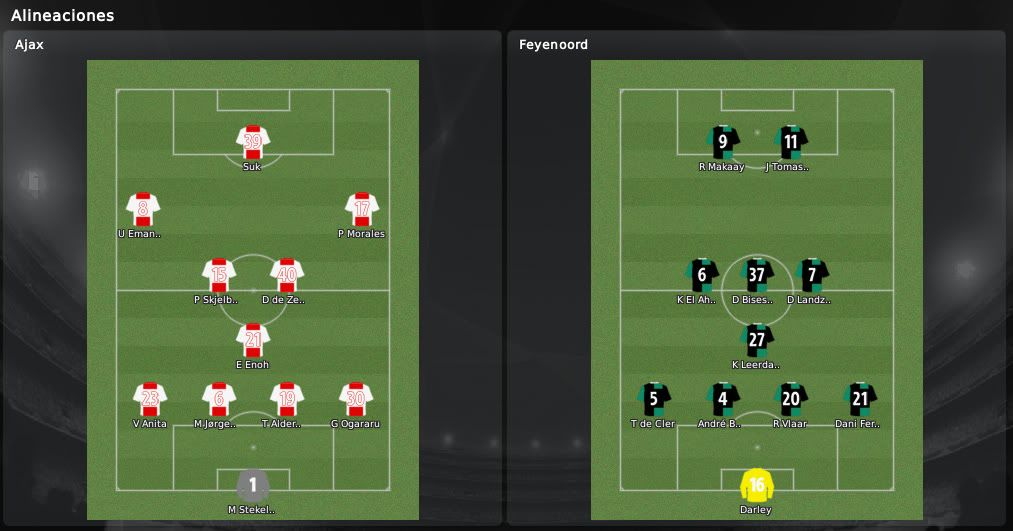 Lo normal sería que el Ajax, jugando en casa y con un equipo más ofensivo, tuviera el balón y llevara el peso del partido. Skjelbred, al contar con Enoh y De Zeeuw en el medio del campo, gozará de una mayor libertad de movimientos y se perfilará como el cerebro del equipo. Dada la no participación de otros como Eriksen, Lodeiro o Suárez su aportación en la transición de ataque se volverá fundamental y de él dependerán las opciones que puedan tener Emanuelson, Morales o Suk. De De Zeeuw también se espera alguna aportación en labores ofensivas pero su tarea principal será dotar de equilibrio al equipo. El Feyenoord a priori puede valerle el empate para conservar el liderato y su 11 es muestra de ello. Veremos como se desarrolla todo y si al final los de Rijkaard consiguen imponerse en un partido importante para la afición y para el futuro de la competición