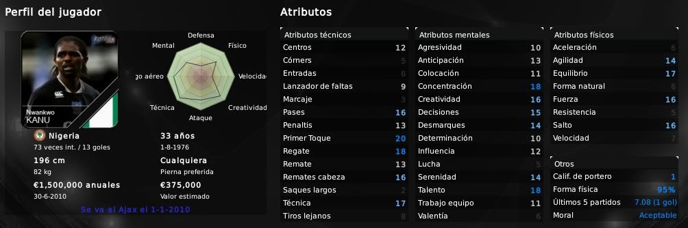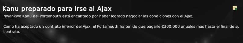 Obviamente yo ya te argumenté mis razones y las ideas por las que consideraba oportunas estas contrataciones. Son jugadores simbólicos, mitos vivos de la historia del club y que llevan el ADN Ajax en sus venas pues conocen a la perfección la forma de jugar que queremos implantar. Económicamente no nos van a suponer tremendos esfuerzos (Kanu va a cobrar 1.000.000, pero a sus 33 años y en un campeonato como la Eredivisie todavía puede dar rendimiento en el campo). Además, siguiendo en la línea de las aportaciones de los dos, los considero claves para el rendimiento del equipo. O sea, el canterano Suk por ejemplo estoy seguro de que no rendirá lo mismo sólo que recibiendo las enseñanzas del gran Kanu, un jugador muy parecido a él. Todo eso al fin y al cabo significarán goles y mejora del chaval, que directamente es una contribución enorme al desarrollo de la entidad. Luego fuera ya de estos argumentos, también tengo que decir que en esta historia no voy buscando lo puramente deportivo, sino que tiro también hacia "la galería", lo simbólico, o como lo quieras llamar. Un Ajax ganador con jugadores como Vermaelen o Pienaar con Kanu y Litmanen en el cuerpo técnico podría ser orgásmico para mi, y a fin de cuentas es lo que voy persiguiendo