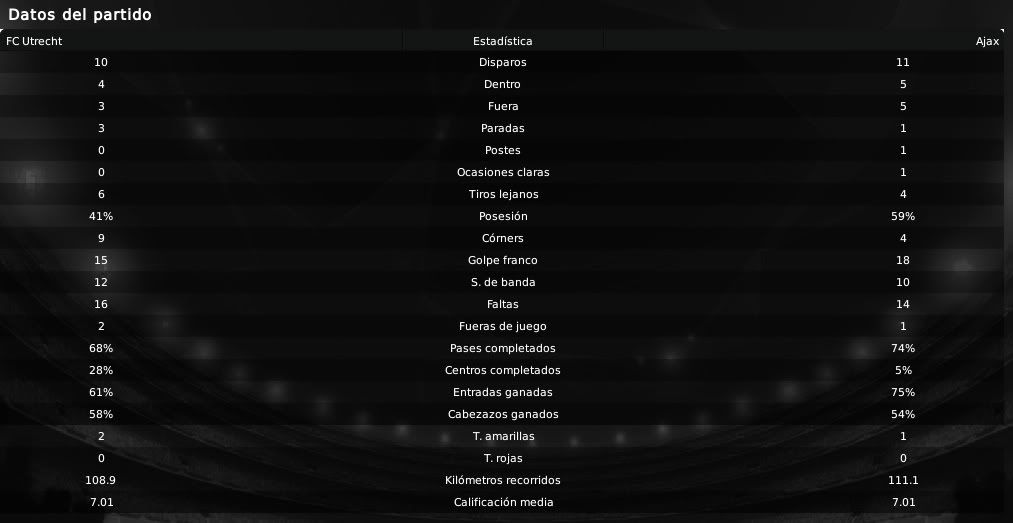 Casi pleno de victorias hasta visitar Utrecht donde lo bueno fue conseguir ese empate después de ellos sorprendieran colocandose con una ventaja de dos goles... muy buenos partidos de Luis Suárez que está demostrando ser la estrella del equipo ajaccied con una gran temporada. Buen año del jugador charrúa y lo que queda todavía, a no ser que en navidades algún equipo ofrezca una millonada por él.