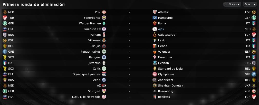 Ya para terminar, refiriéndonos al Ajax - Toulousa, la Ida se disputará el Jueves 18 de Febrero en tierras francesas, mientras que la vuelta será el Jueves 25 de Febrero en el Amsterdam Arena.