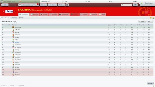 Tras esto, nos situamos en una digna 7ª posición, a pesar de llevar menos partidos, el mes que viene se antoja sencillo salvo el partido contra el Barcelona en el que buscaremos salir vivos. Clasificación Liga BBVA