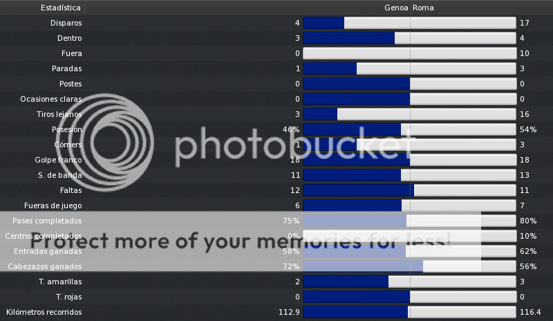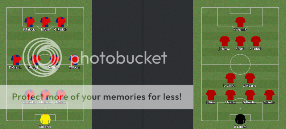 Me parece un inicio aceptable, quizás te parezca mal resultado el de Genoa pero como dice Alvarito es complicado ese equipo, tiene muy buenos jugadores. Veo que contra Milan subiste a De Rossi como habíamos comentado, que te pareció?