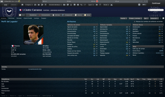 1. Carasso Portero de muy buen nivel, esta temporada sus actuaciones no han sido del todo convincentes. Aún así, su sitio en el club es el de portero titular. Deberá trabajar duro para recuperar su mejor forma.