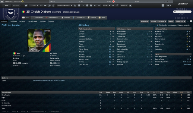 25. Diabaté El malí es un tanque en toda regla. 1,94 metros de estatura y la fuerza de un toro. Aún es joven y debe progresar, aunque puede que cuente con oportunidades.