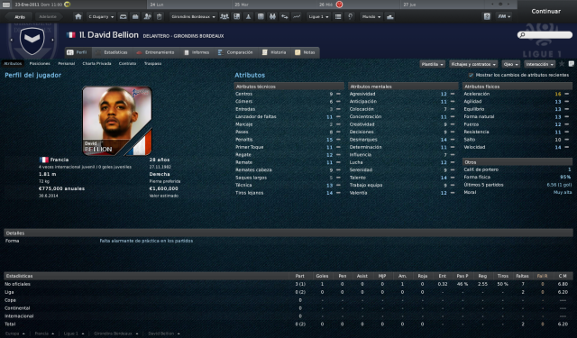 11. Bellion A apenas unos minutos testimoniales se reduce la aportación del punta en esta temporada. El problema del Girondins se llama gol y este futbolista no parece el más adecuado para solucionarlo. Como segundo delantero es una opción interesante.