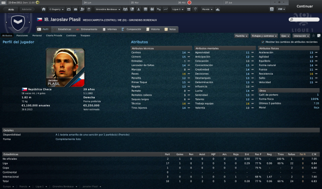 18. Plasil El todoterreno checo es la manija del equipo en mediocampo, un dato un tanto preocupante visto su rendimiento irregular a lo largo de la temporada. Si mejora sus registros, será un perfecto catalizador del juego, ya que dispone de un amplio repertorio de técnicas que nos serán muy útiles.