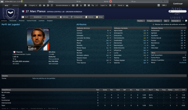 27. Planus Partía como indispensable en las alineaciones de Tigana, pero una desgraciada lesión le apartó del equipo hasta hace poco. Volvió a jugar un par de partidos, demostrando un nivel fantástico y una muy buena forma. Se trata de un experimentado central que sabe leer el juego como nadie.