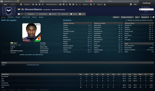 26. Maazou Este nigerino de 22 años, cedido por el CSKA de Moscú, ha sido el goleador del equipo esta temporada con 7 goles. Es rapidísimo y escurridizo, pero le falta por madurar para poder echarse el equipo a la espalda.