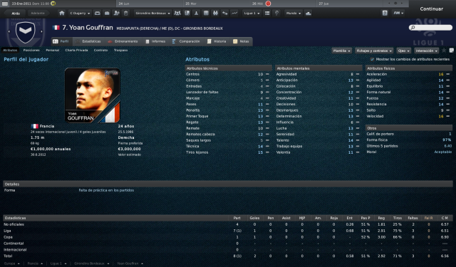 7. Gouffran El que fuera crack del Caen no termina de explotar en Bordeaux por más oportunidades que se le den. Este mediapunta derecho destaca por su velocidad, aunque su técnica no es muy remarcable.