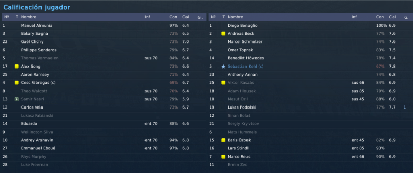 Muy buena victoria en Londres, debíamos ganar si queríamos tener opciones de clasificar y así fue, la apuesta de combinar a Kehl junto con Annan resulto perfectamente y nos dio mucha más lucha al mediocampo y por lo mismo el partido estuvo muy peleado y con pocas chances para ambos. Por suerte Podolski pudo anotar un muy buen gol con una buena jugada individual lo cual nos dio el triunfo.