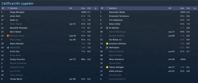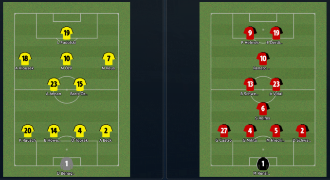 Mandamos al campo un equipo bastante alternativo por la propia acumulación, además de lesiones y suspensiones. Increíblemente nuevamente se nos complicó el juego con expulsiones, algo que no sucedia nunca en el Dortmund. Para peor nuevamente Annan fue expulsado en el primer tiempo, esta vez con roja directa. Y tras cartón, iniciada la segunda mitad fue expulsado su compañero en el centro del campo Özbek.